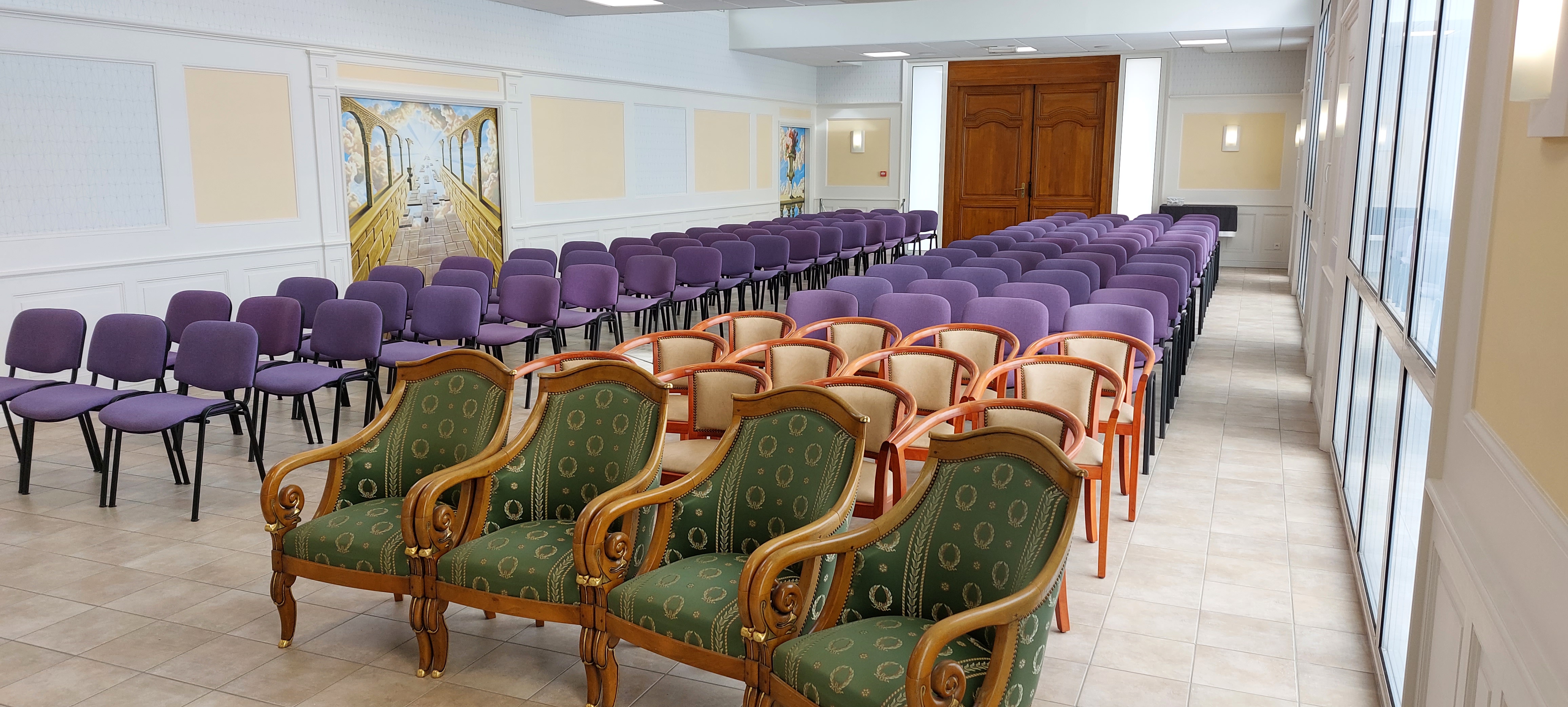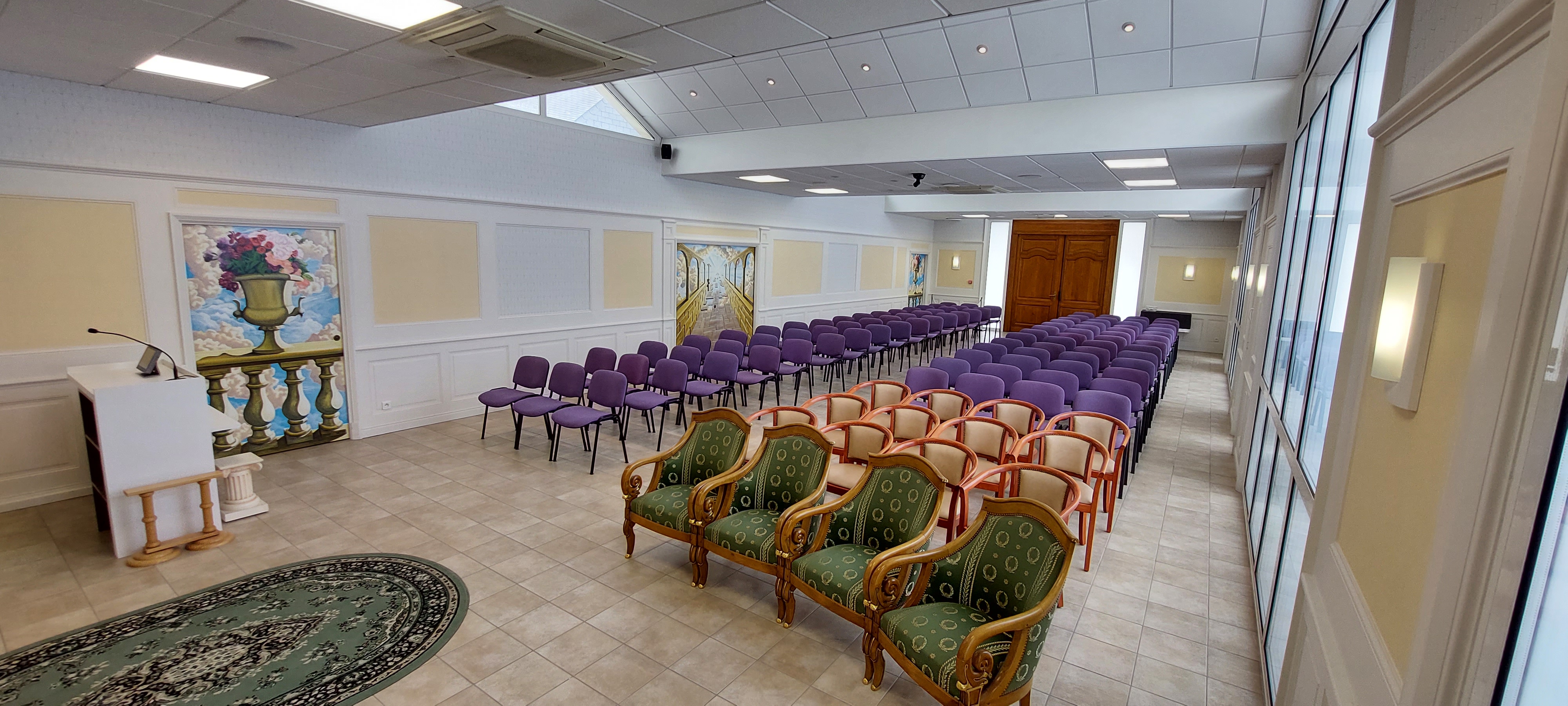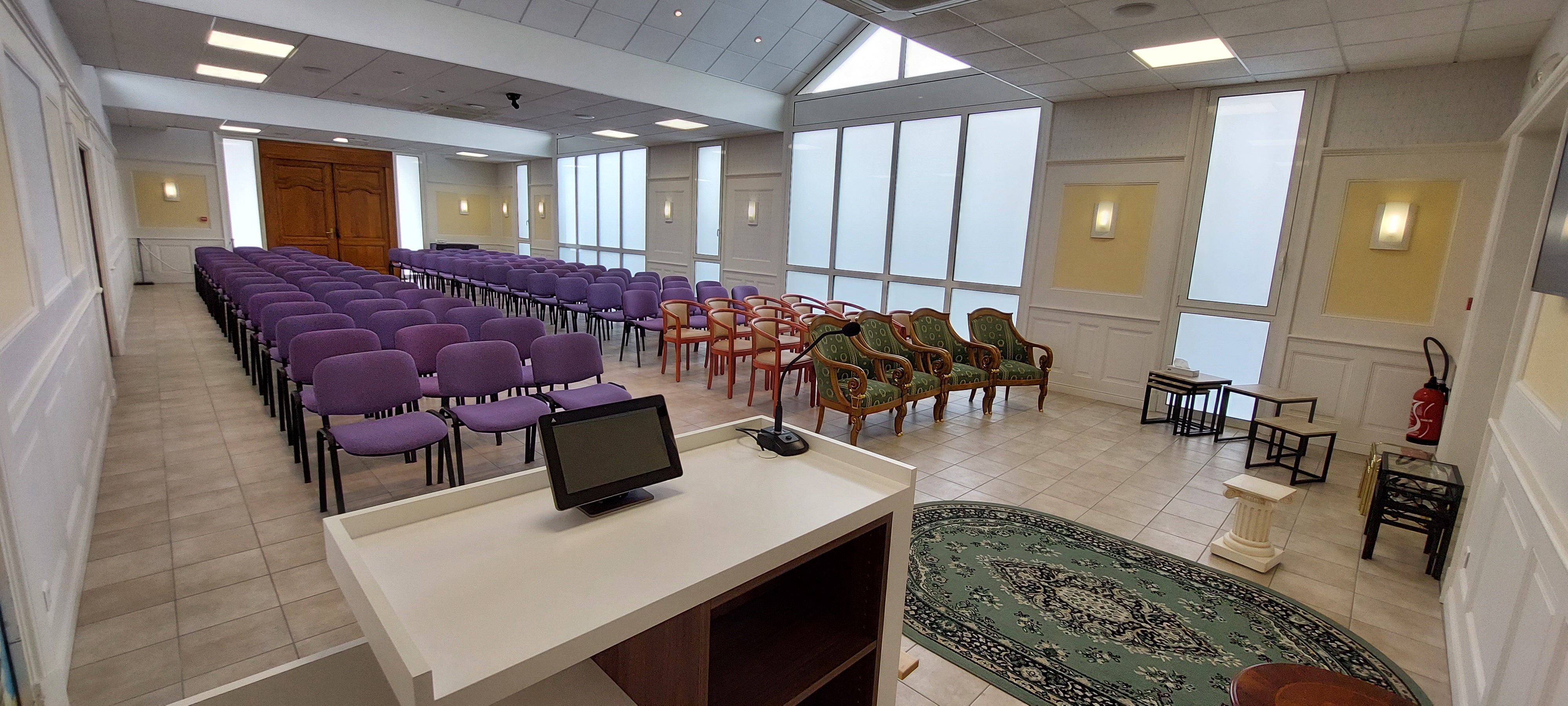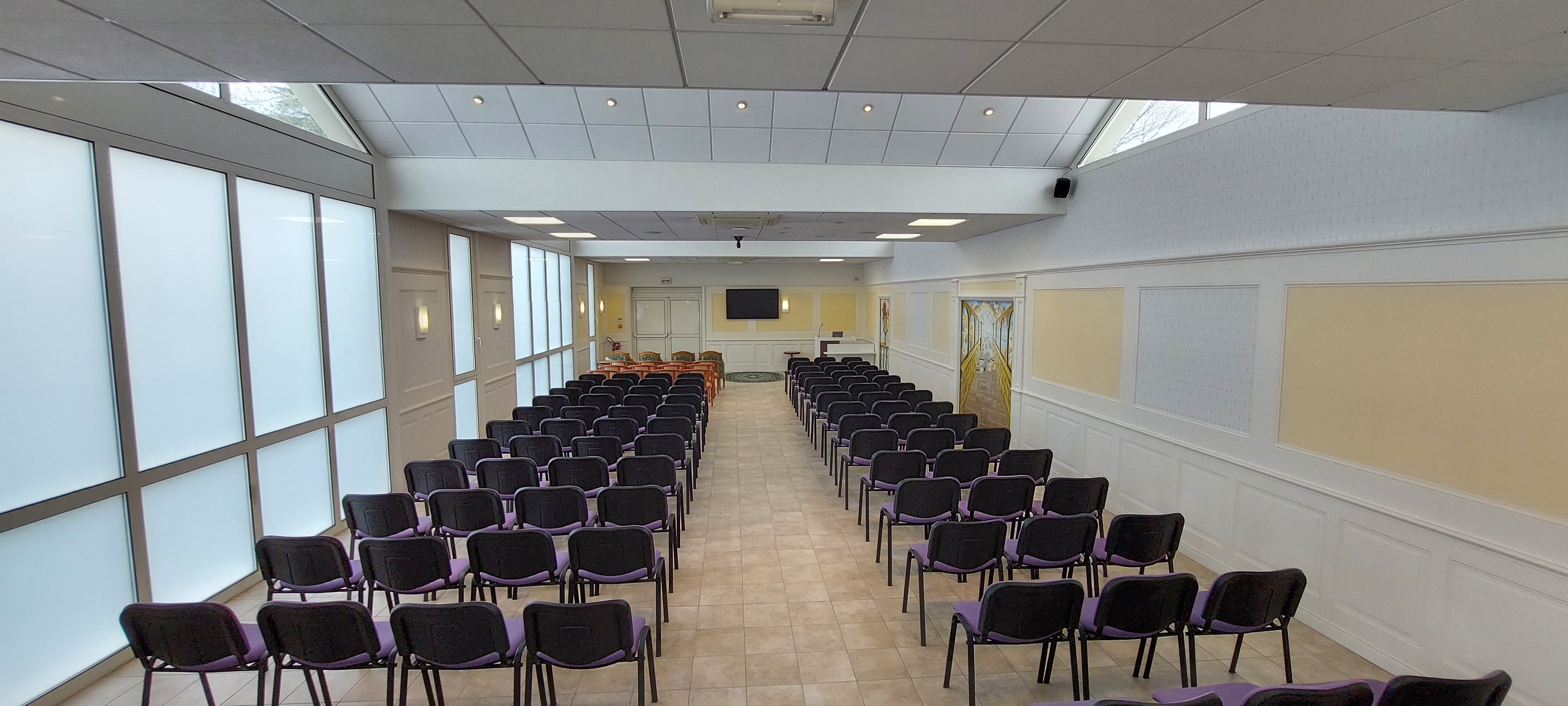 Nous sommes l'unique entreprise de pompes funèbres, aux alentours de Loudéac, à disposer d'une véritable salle de cérémonie, d'une capacité de 120 places assises.
