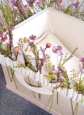 Une alternative aux pétales permettant l'insertion de fleurs à tige ou de petites branches tout autour du cercueil.