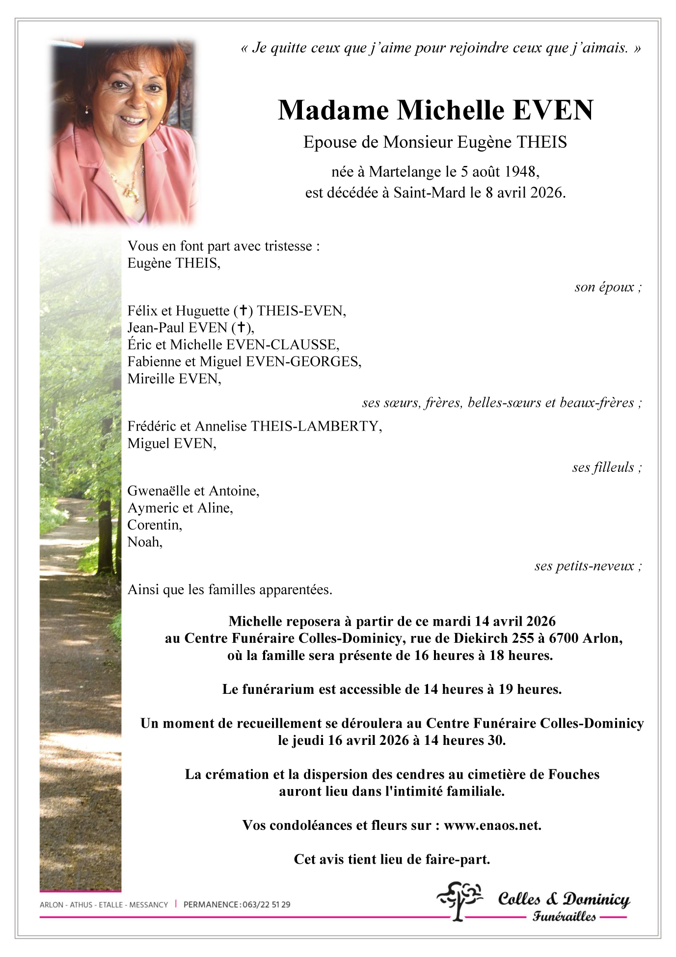 Centre Funéraire Arlon te Arlon op donderdag 16 april om 14 u 30