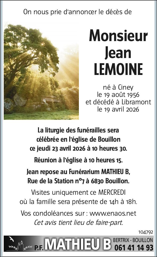 Avis de décès de Monsieur Jean LEMOINE
