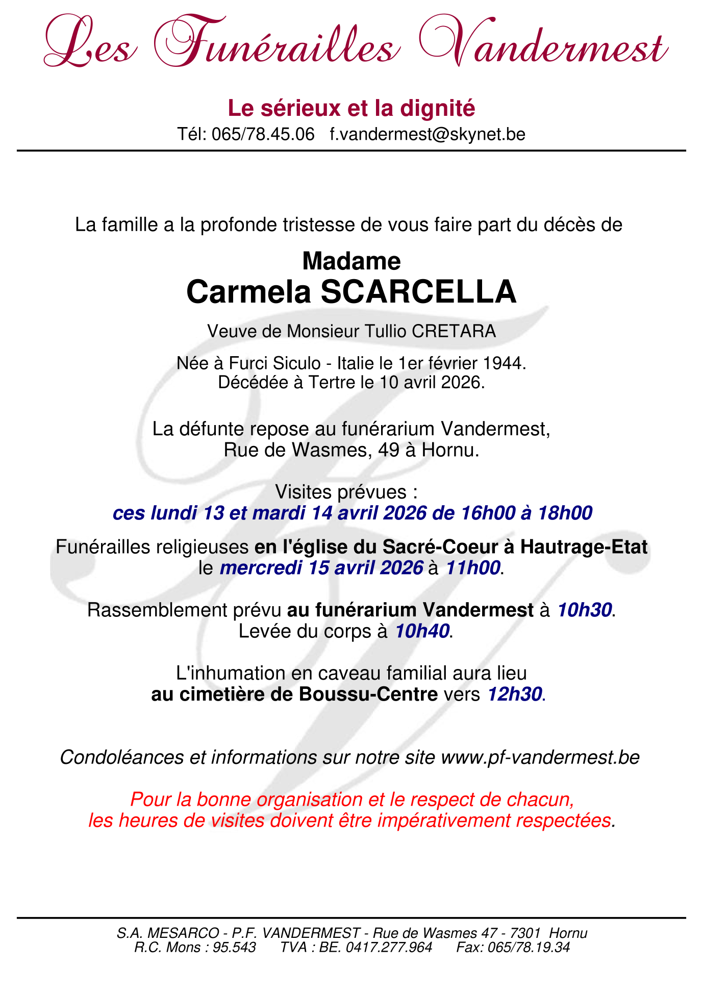 au funérarium Vandermest à 10 heures 30