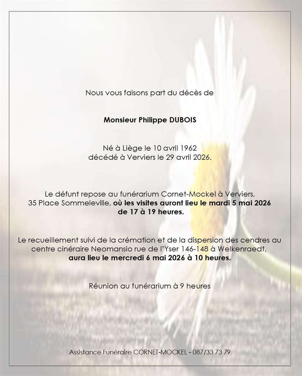 Centre Funéraire de Welkenraedt le mercredi 6 mai à 10 heures 30