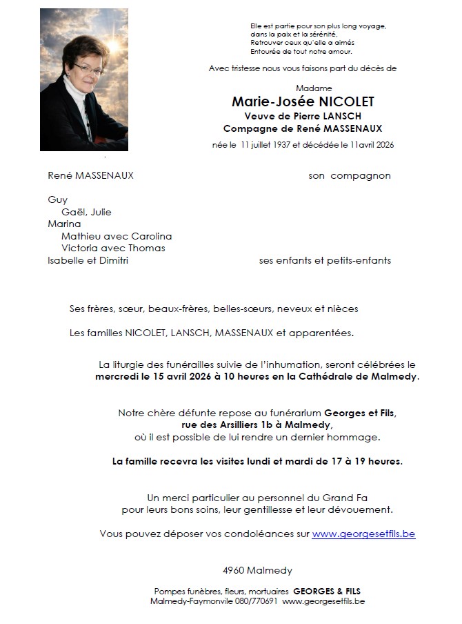 Cimetière de Malmedy le mercredi 15 avril à 11 heures 30