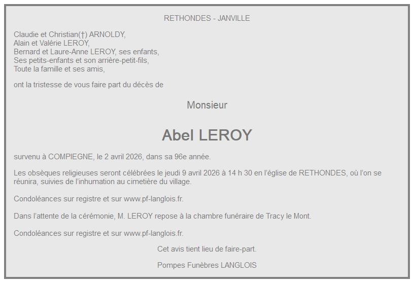Avis de décès de Monsieur Abel LEROY