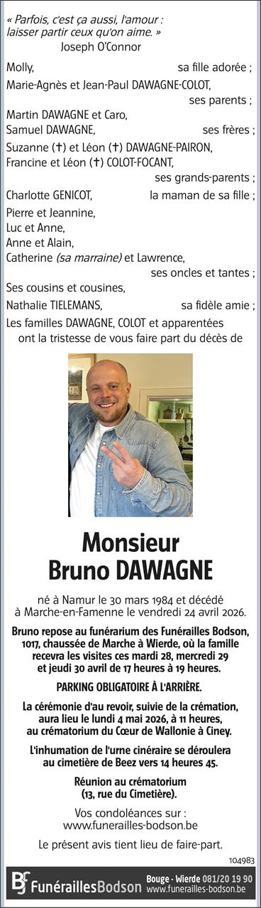 Décédé à Marche-en-Famenne (6900) le vendredi 24 avril 2026 à l'âge de 42 ans