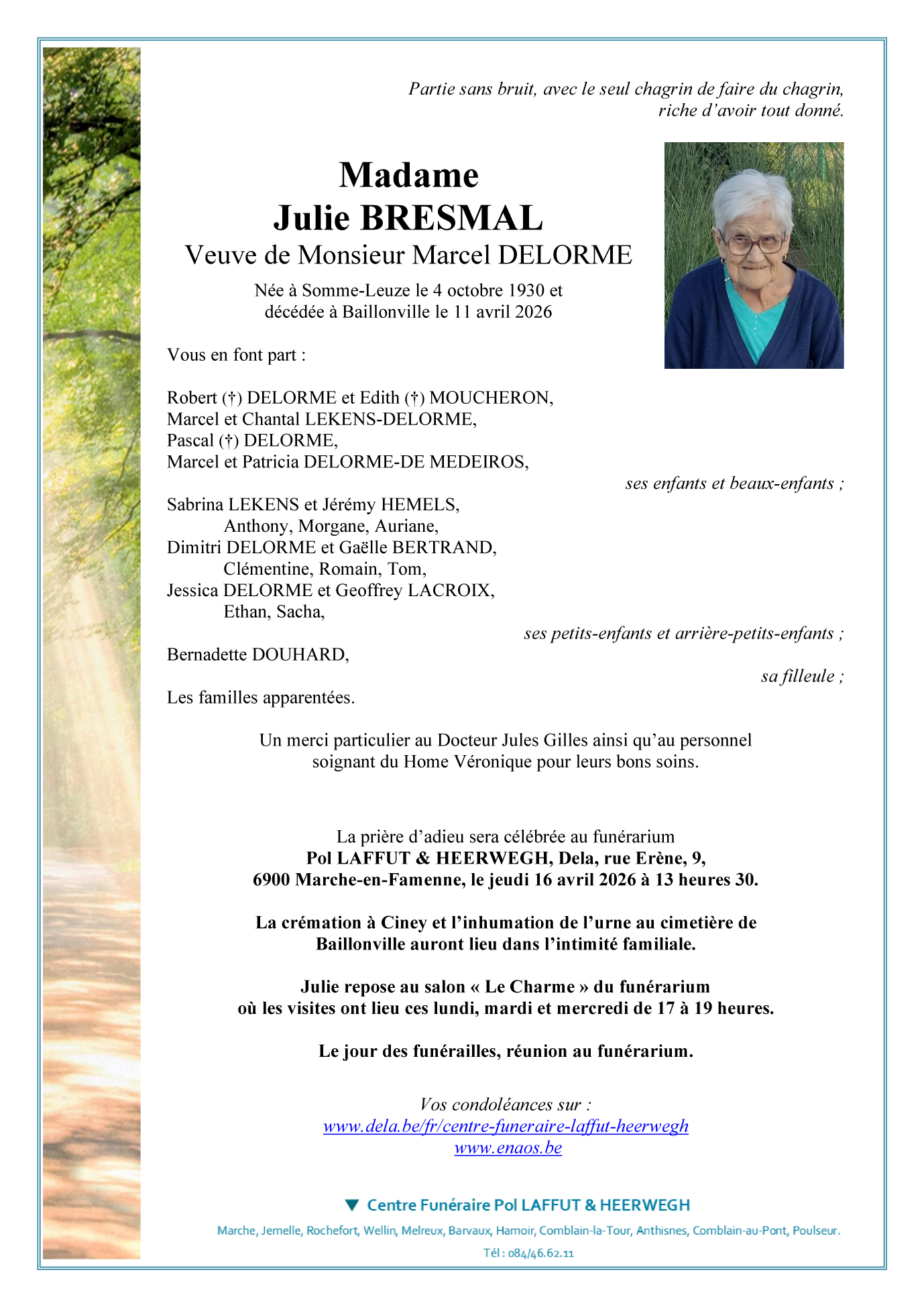 Centre funéraire Pol Laffut & Heerwegh de Marche-en-Famenne le jeudi 16 avril à 13 heures 30