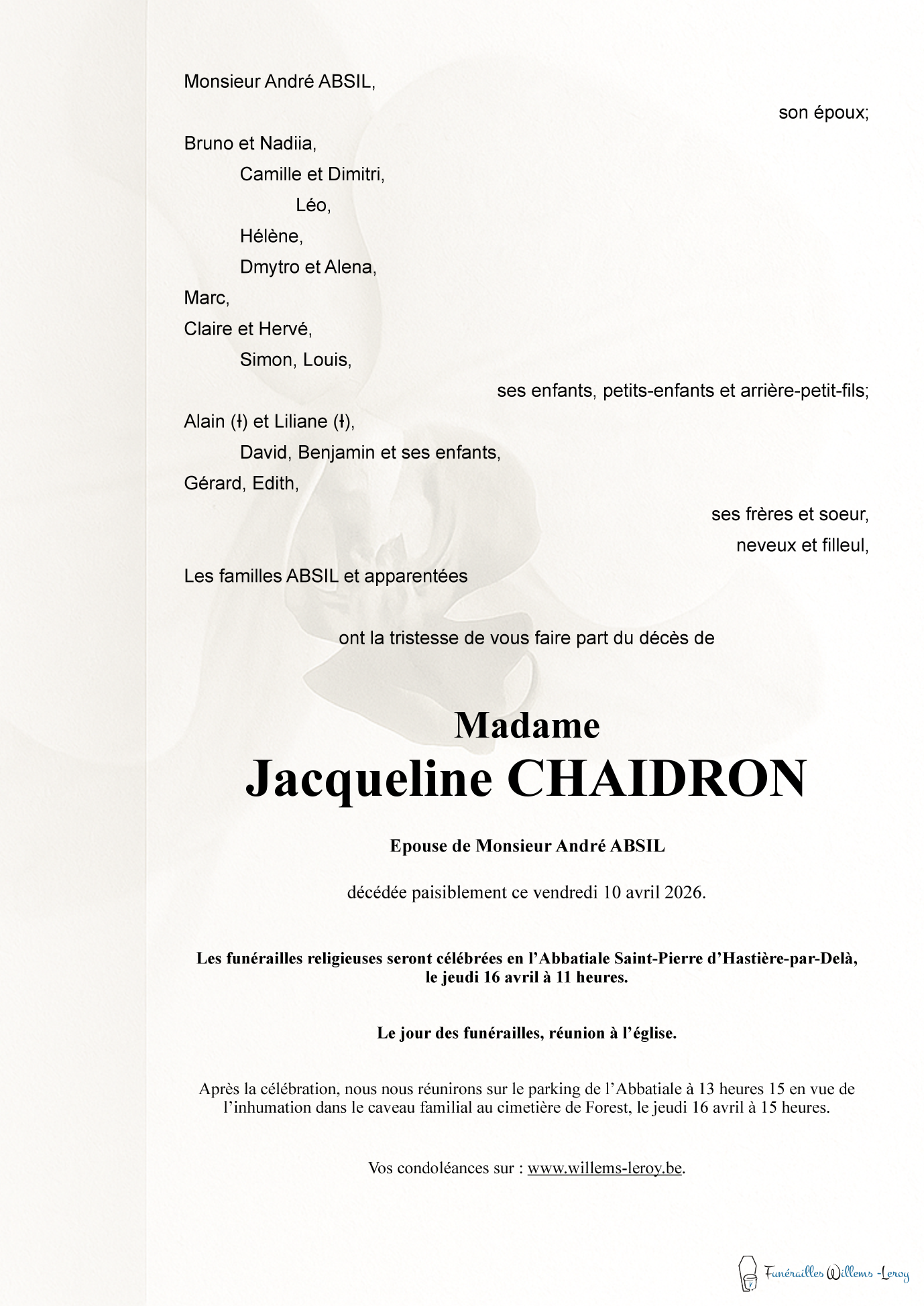 Lieu de repos, Funérailles Willems-Leroy srl