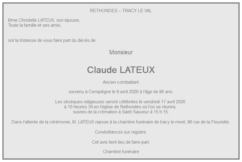Décédé à Compiègne (60200, France) le jeudi 9 avril 2026 à l'âge de 86 ans