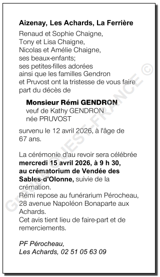 Avis de décès de Monsieur Rémi GENDRON