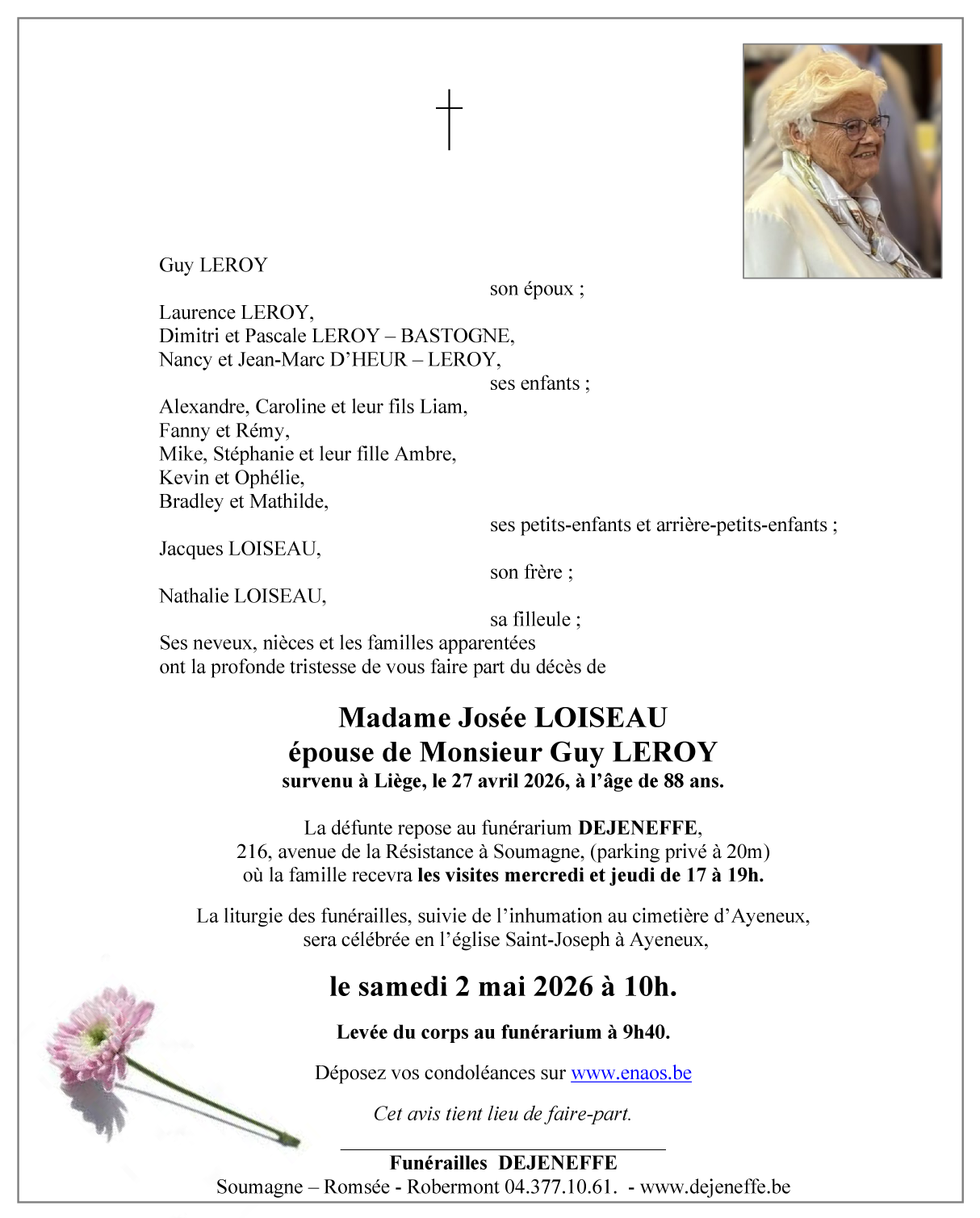 Avis de décès de Madame Josée LEROY - LOISEAU