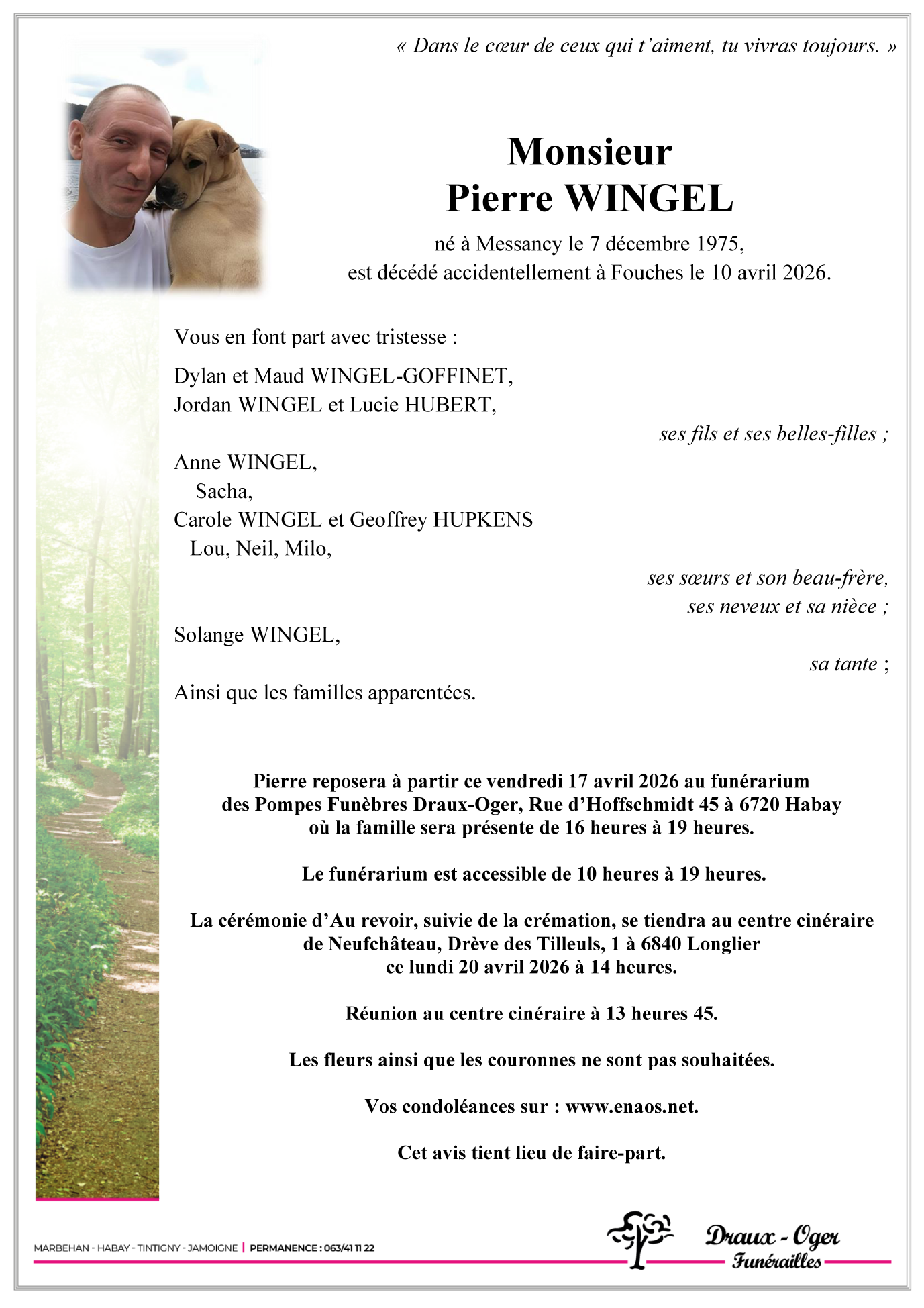 Avis de décès de Monsieur Pierre WINGEL