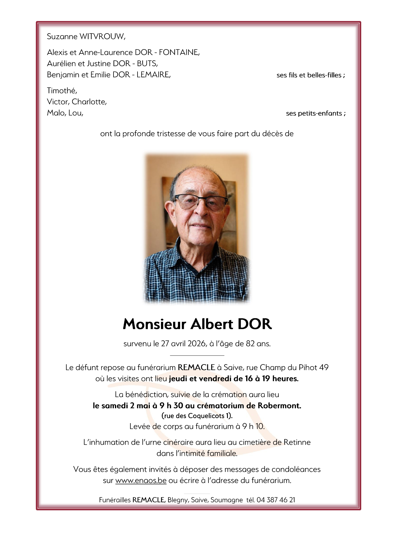 Funérailles Remacle Saive à 9 heures 10