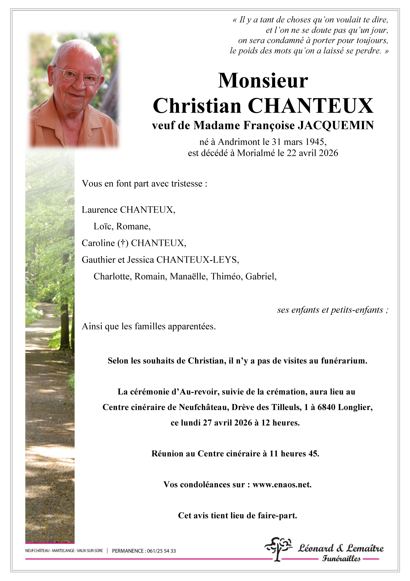 Centre cinéraire de Neufchâteau - Longlier à 11 heures 45