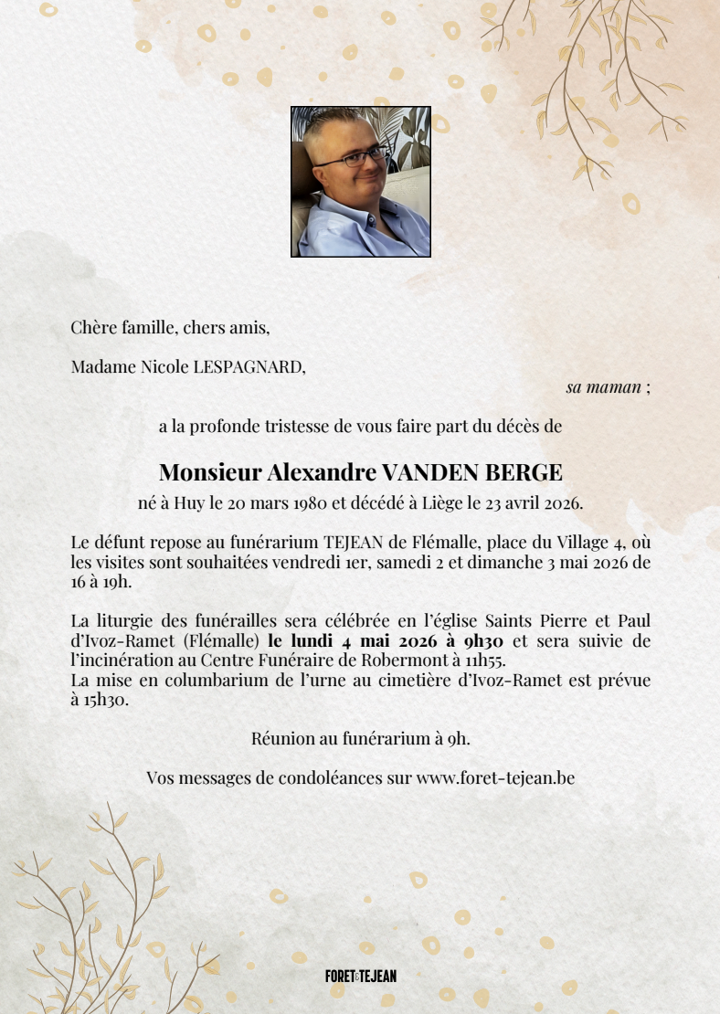 crématorium de Robermont le lundi 4 mai à 11 heures 55