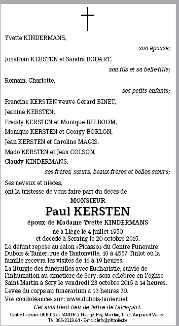 Décédé à Seraing (4100) le mardi 20 octobre 2015 à l'âge de 65 ans
