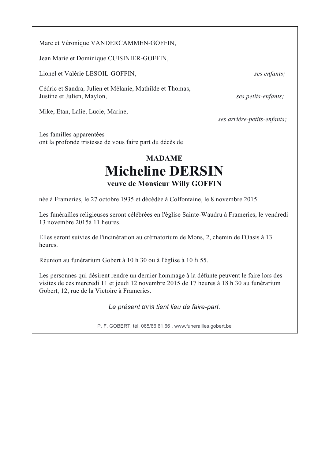 Décédé à Colfontaine (7340) le dimanche 8 novembre 2015 à l'âge de 80 ans