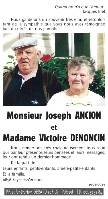 Joseph et Victoire ANCION-DENONCIN