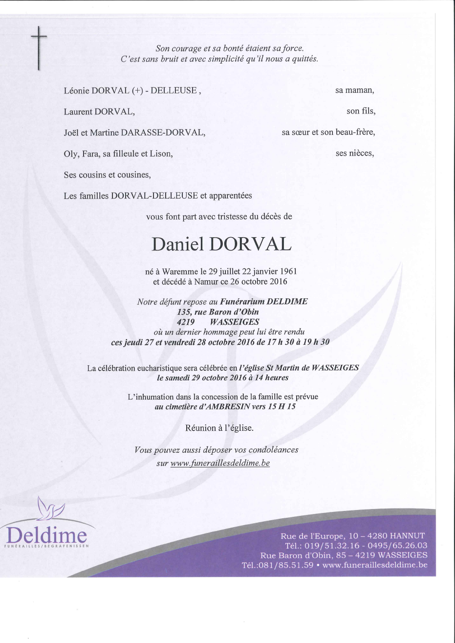 Décédé à Namur (5000) le mercredi 26 octobre 2016 à l'âge de 55 ans