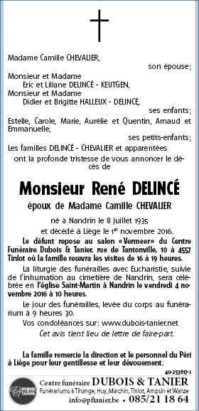 Décédé à Liège (4000) le mardi 1 novembre 2016 à l'âge de 81 ans