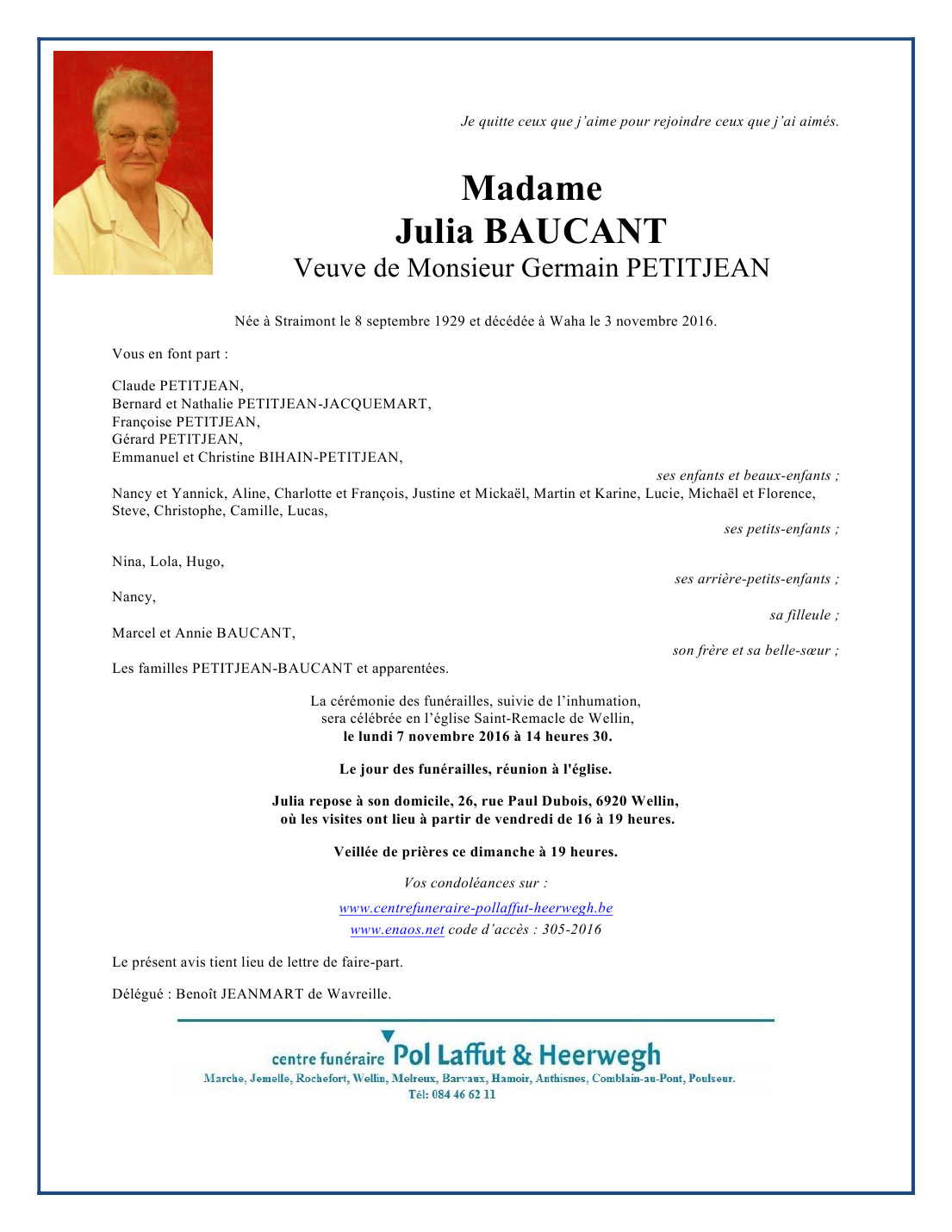 Overleden te Waha (6900) op donderdag 3 november 2016 op 87-jarige leeftijd
