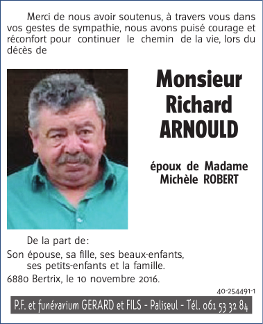 Décédé à Bertrix (6880) le lundi 17 octobre 2016 à l'âge de 58 ans