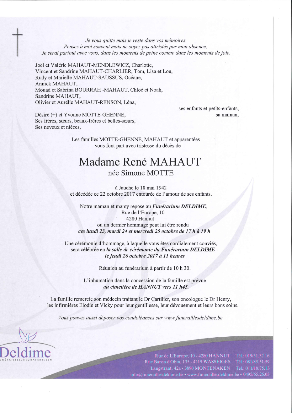 Died in Hannut (4280) on 22 October 2017 at the age of 75 years
