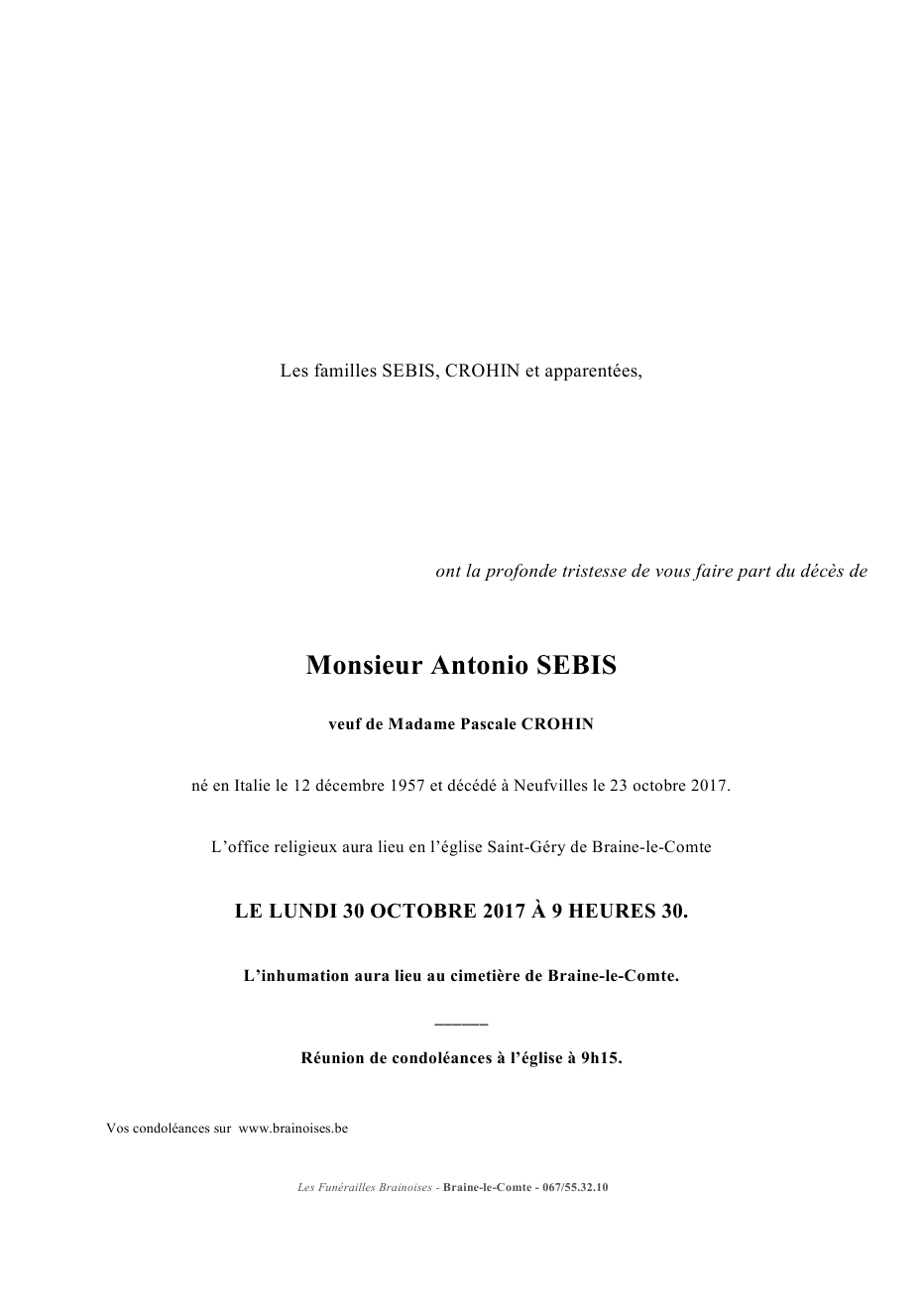 Décédé à Soignies (7060) le lundi 23 octobre 2017 à l'âge de 59 ans
