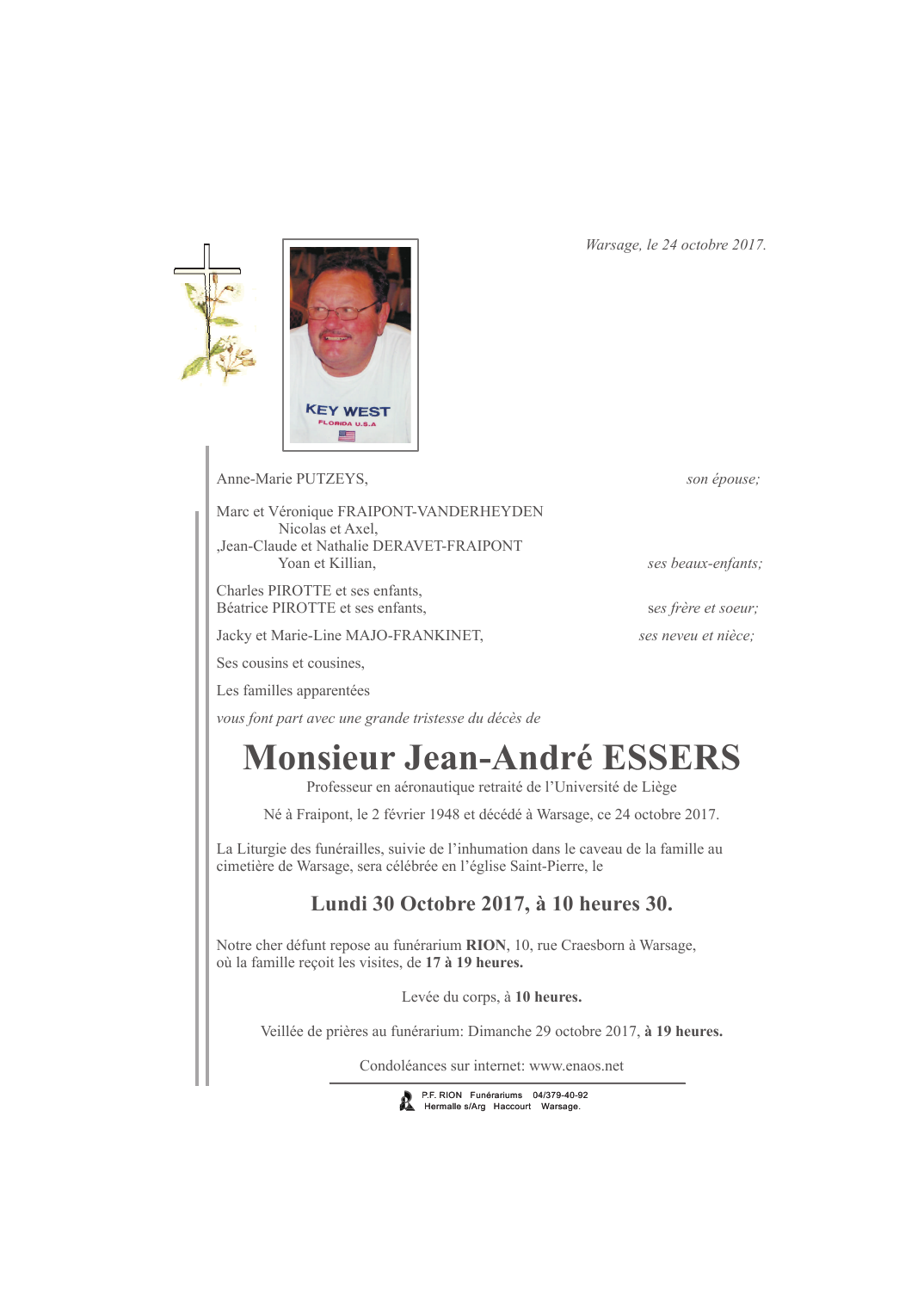 Décédé à Warsage (4608) le mardi 24 octobre 2017 à l'âge de 69 ans