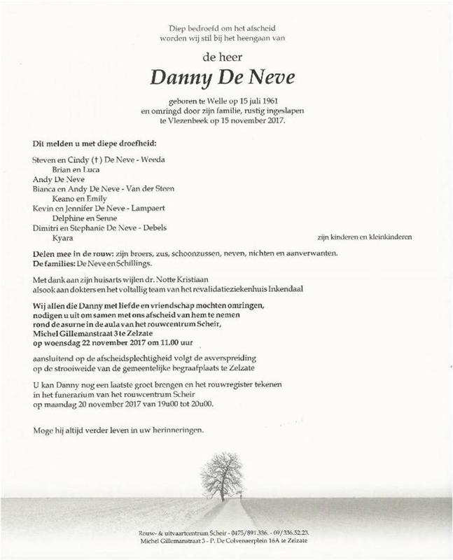 Décédé à Vlezenbeek (1602) le mercredi 15 novembre 2017 à l'âge de 56 ans