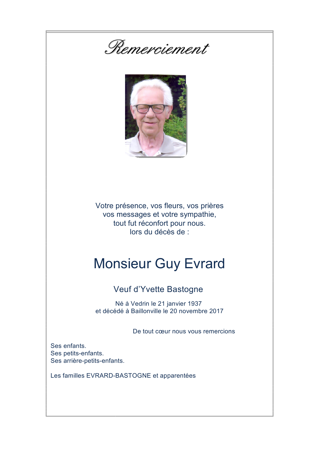 Décédé à Baillonville (5377) le lundi 20 novembre 2017 à l'âge de 80 ans