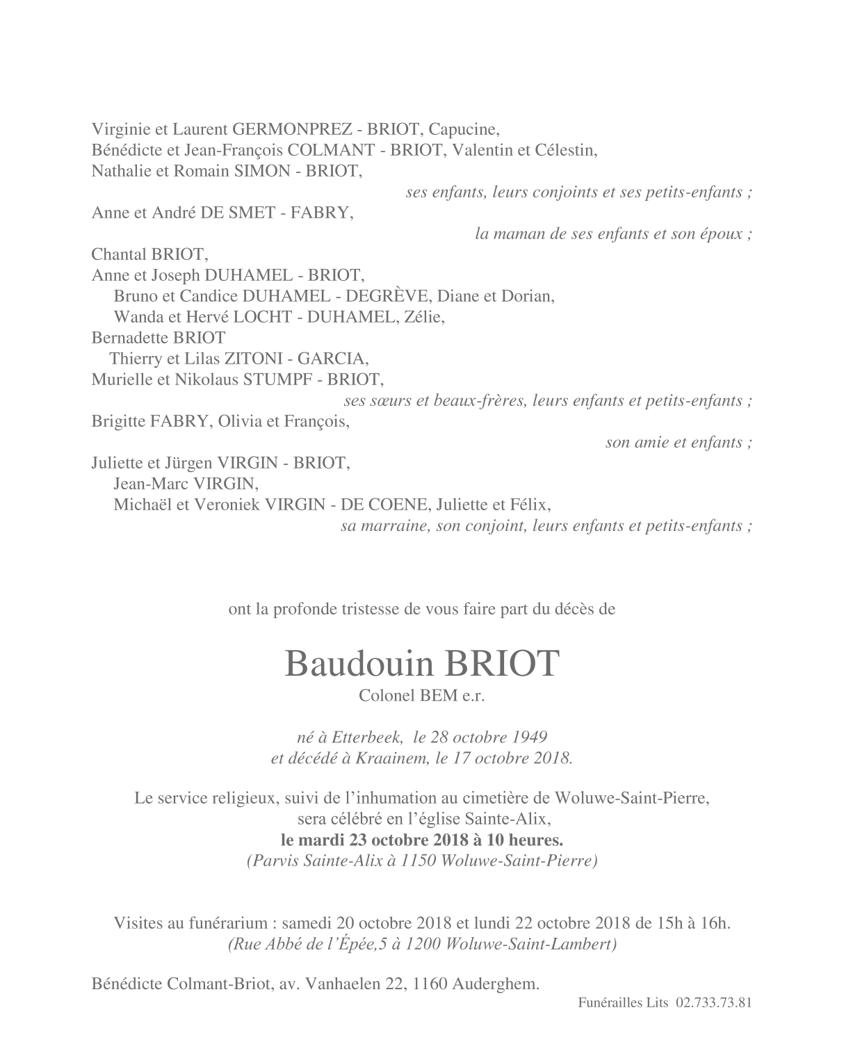 Décédé à Kraainem (1950) le mercredi 17 octobre 2018 à l'âge de 68 ans