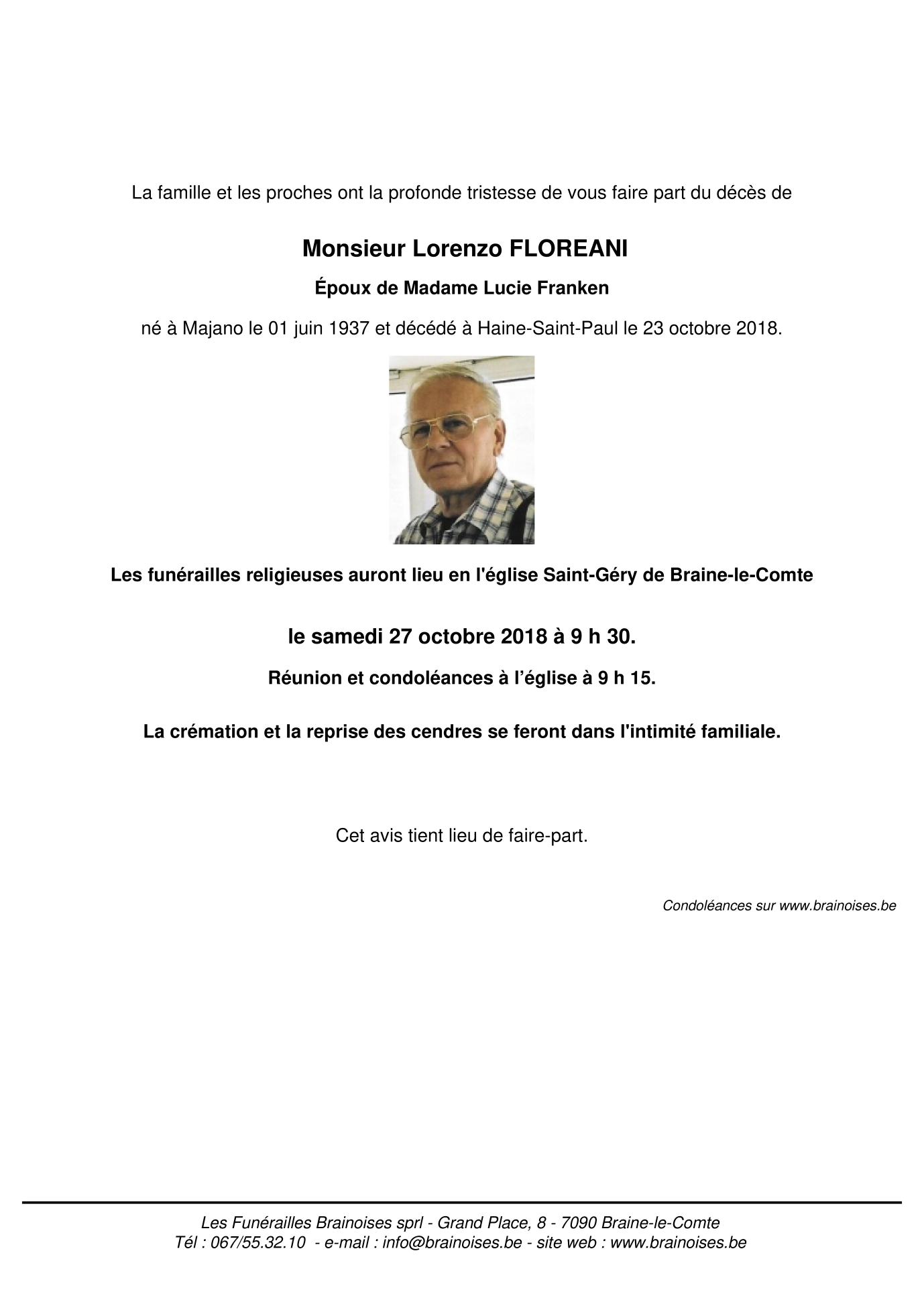 Décédé à Haine-Saint-Paul (7100) le mardi 23 octobre 2018 à l'âge de 81 ans