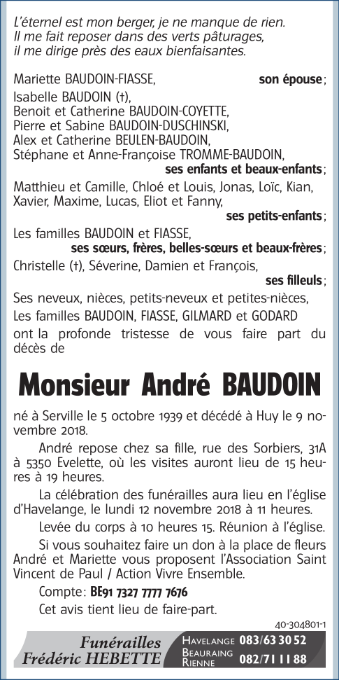 Died in Huy (4500) on 09 November 2018 at the age of 79 years