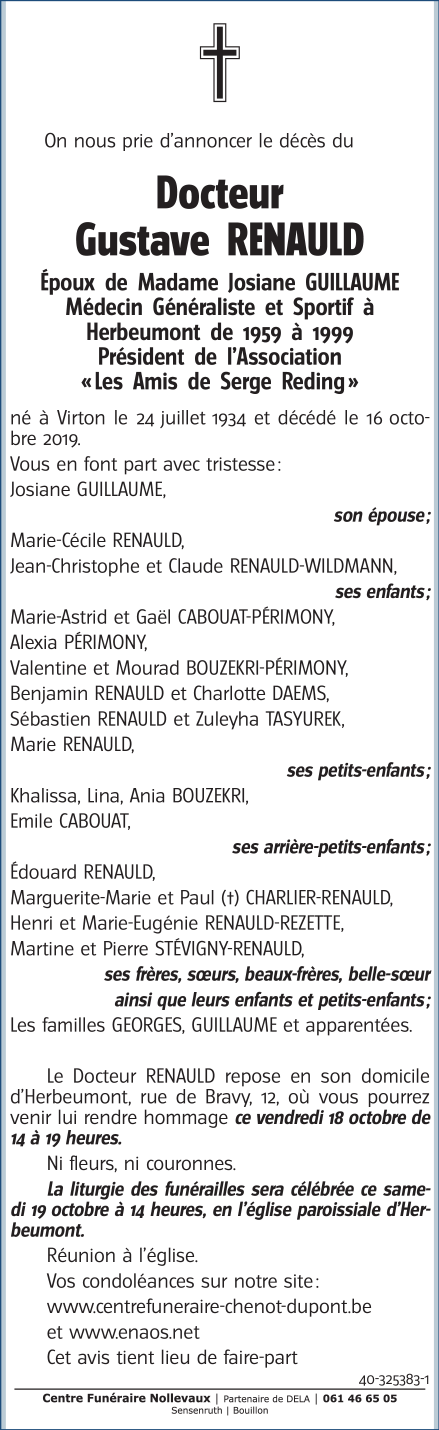 Décédé à Libramont (6800) le mercredi 16 octobre 2019 à l'âge de 85 ans