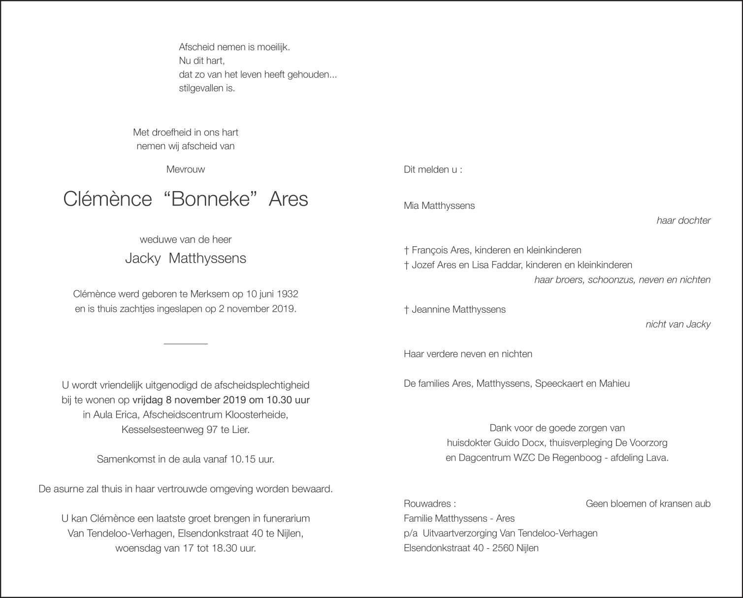 Overleden te Nijlen (2560) op zaterdag 2 november 2019 op 87-jarige leeftijd