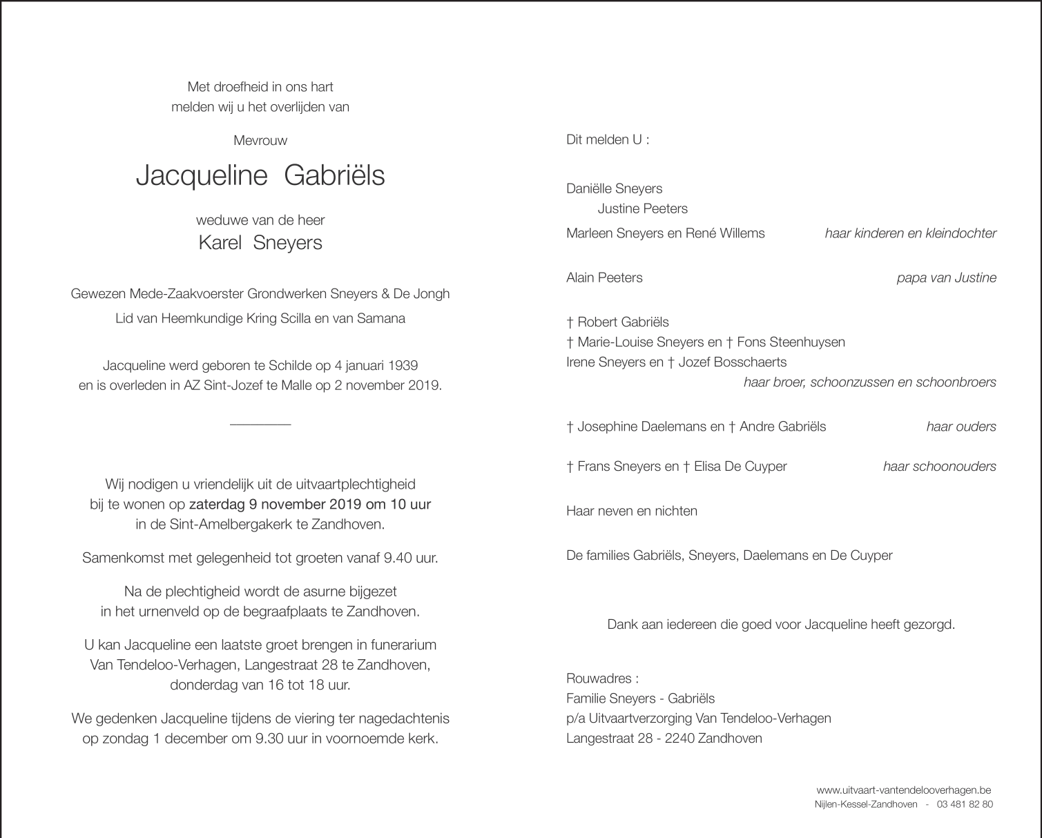 Née à Schilde (2970) le mercredi 4 janvier 1939