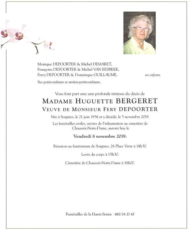 Décédée à Soignies (7060) le mardi 5 novembre 2019 à l'âge de 83 ans