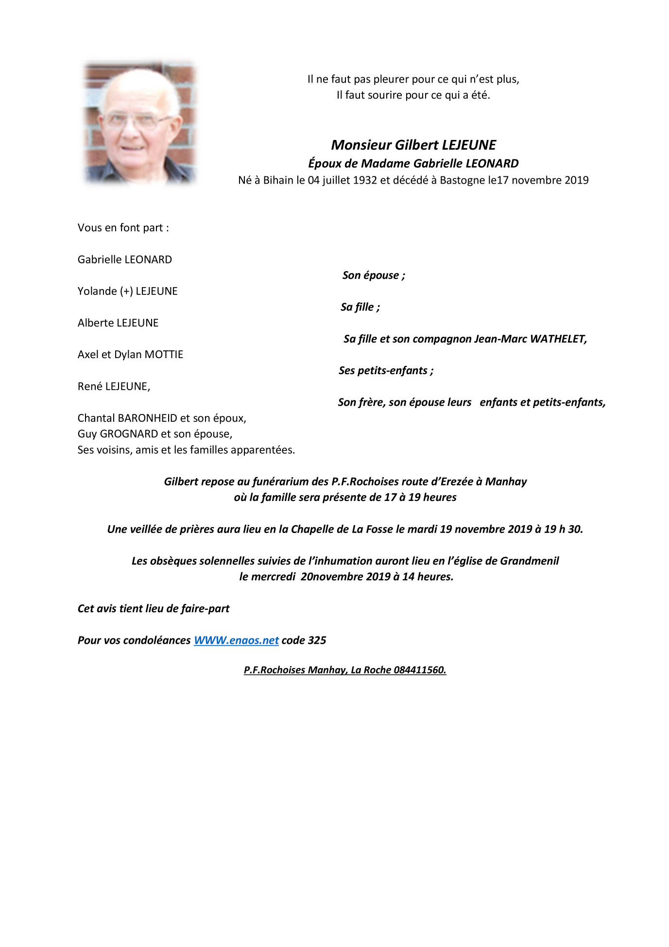 Monsieur Gilbert LEJEUNE