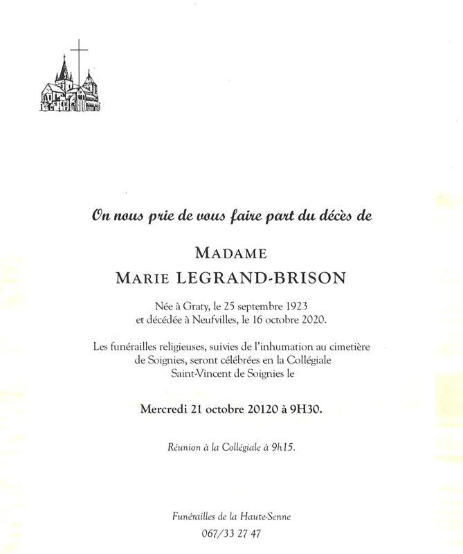 Décédée à Neufvilles (7063) le vendredi 16 octobre 2020 à l'âge de 97 ans
