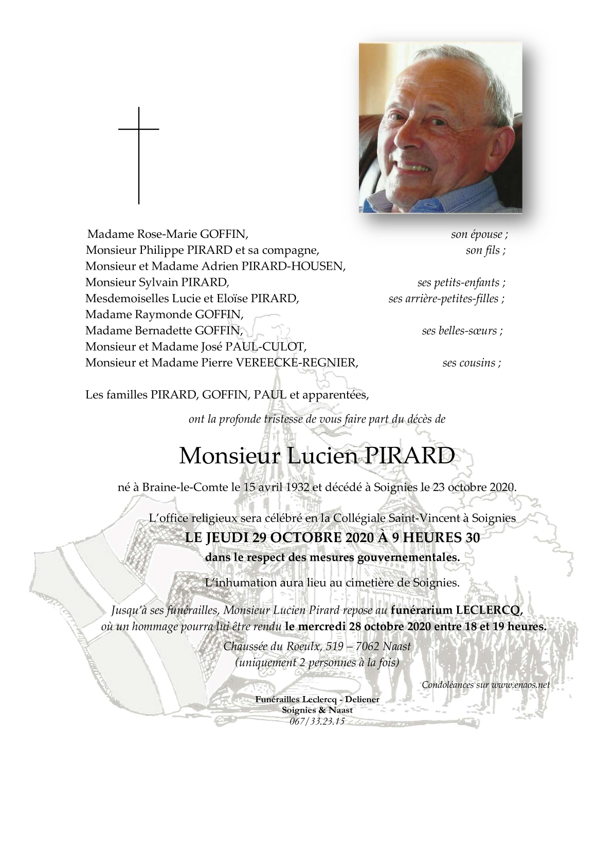 Décédé à Soignies (7060) le vendredi 23 octobre 2020 à l'âge de 88 ans