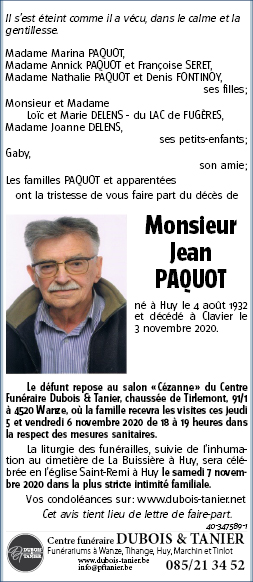 Died in Ochain (4560) on 03 November 2020 at the age of 88 years