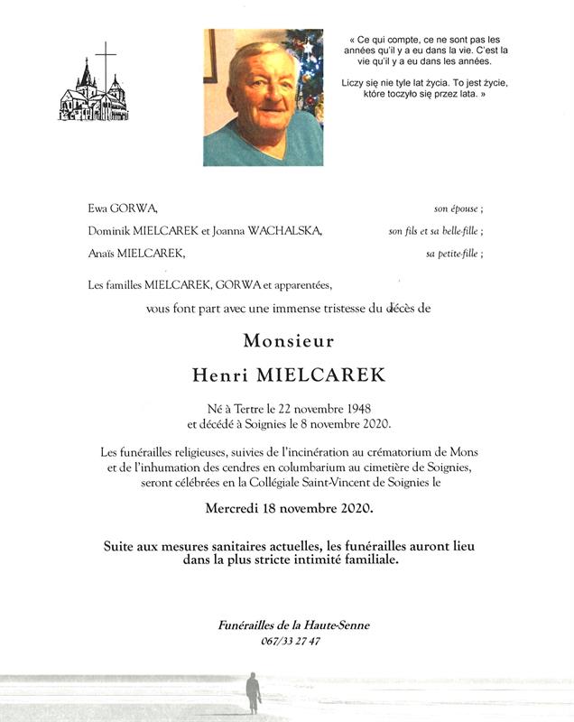 Décédé à Soignies (7060) le dimanche 8 novembre 2020 à l'âge de 71 ans