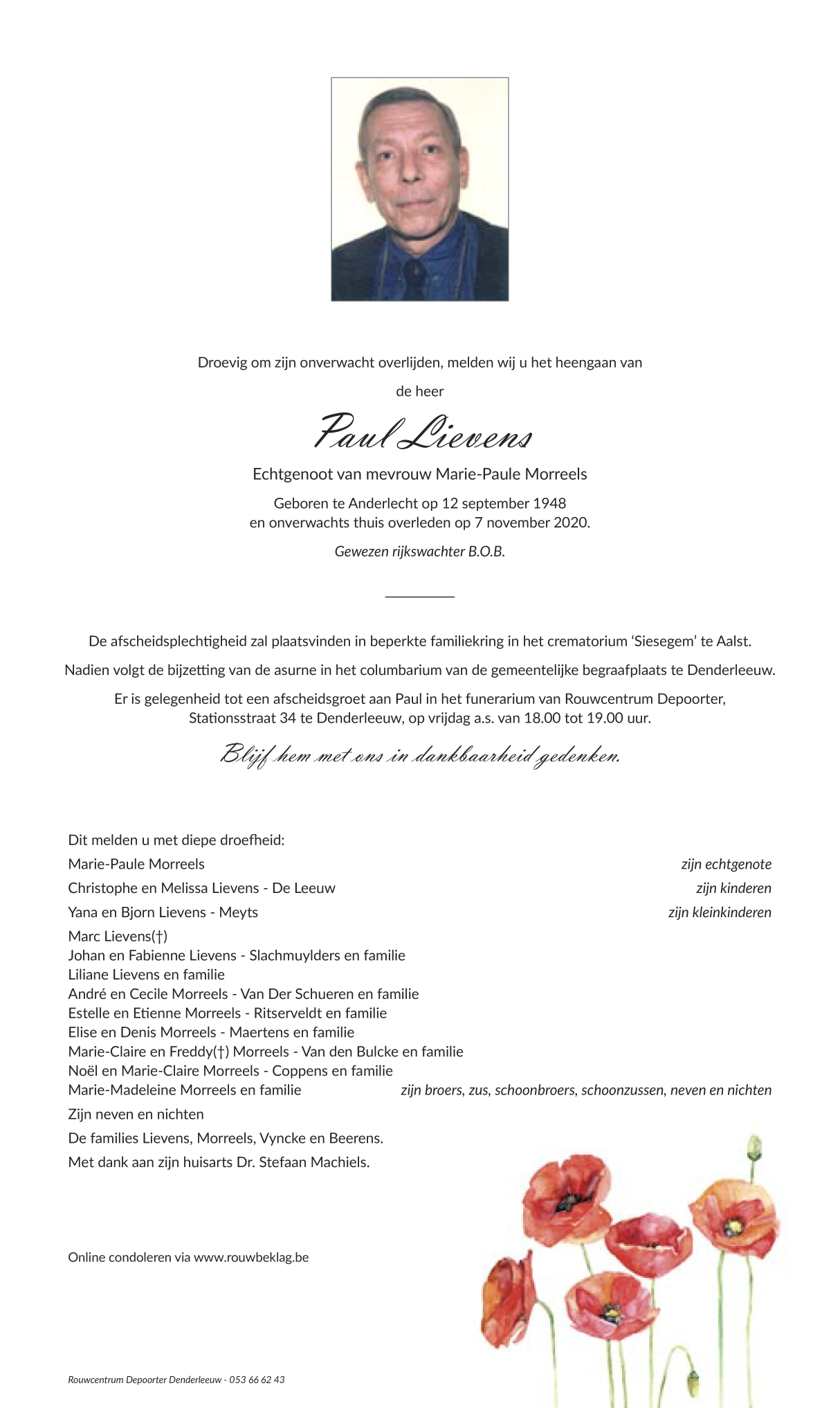 Echtgenoot van Mevrouw Marie-Paule Morreels