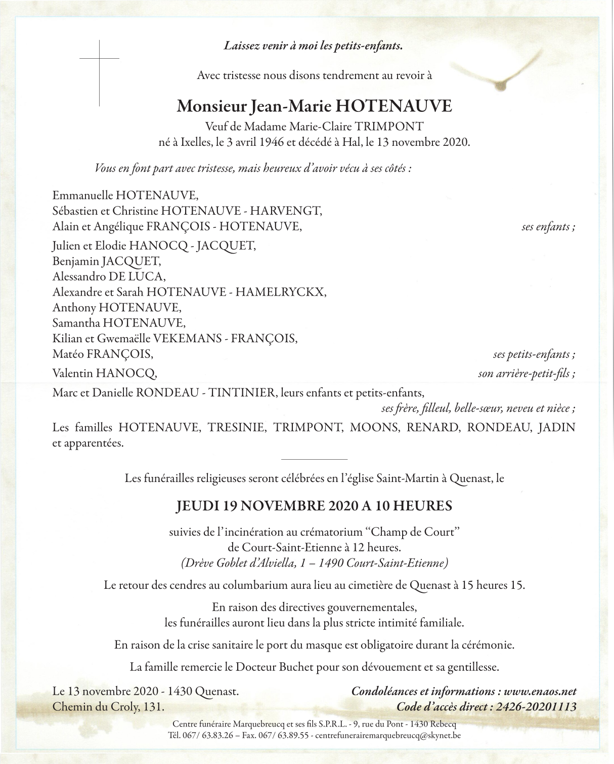 Décédé à Halle (1500) le vendredi 13 novembre 2020 à l'âge de 74 ans