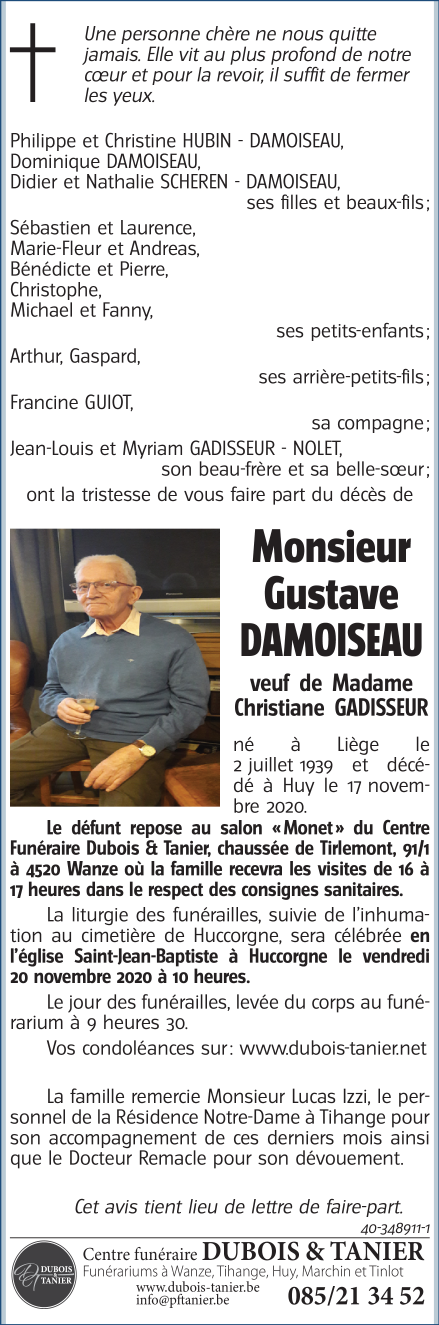 Died in Huy (4500) on 17 November 2020 at the age of 81 years