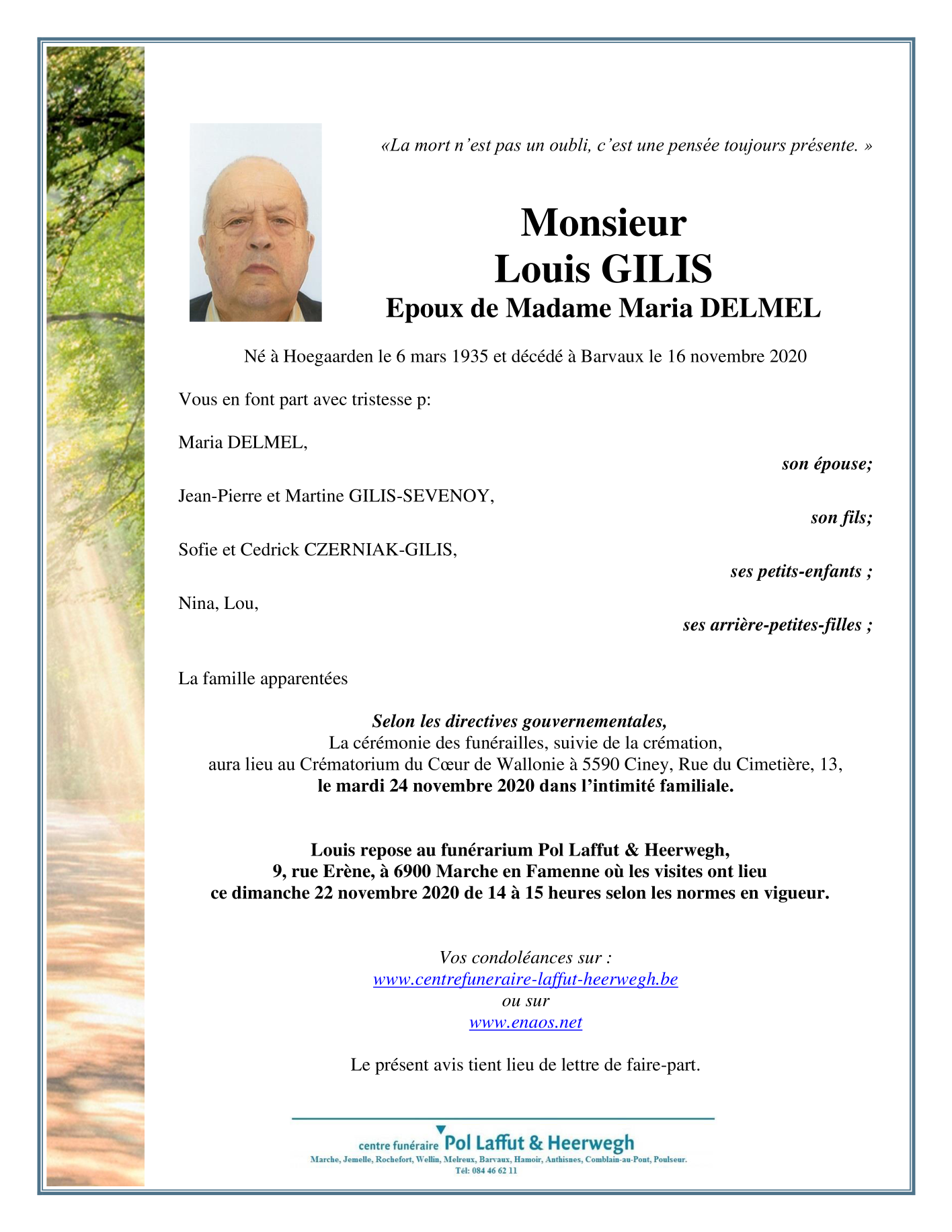 Décédé à Barvaux-sur-Ourthe (6940) le lundi 16 novembre 2020 à l'âge de 85 ans