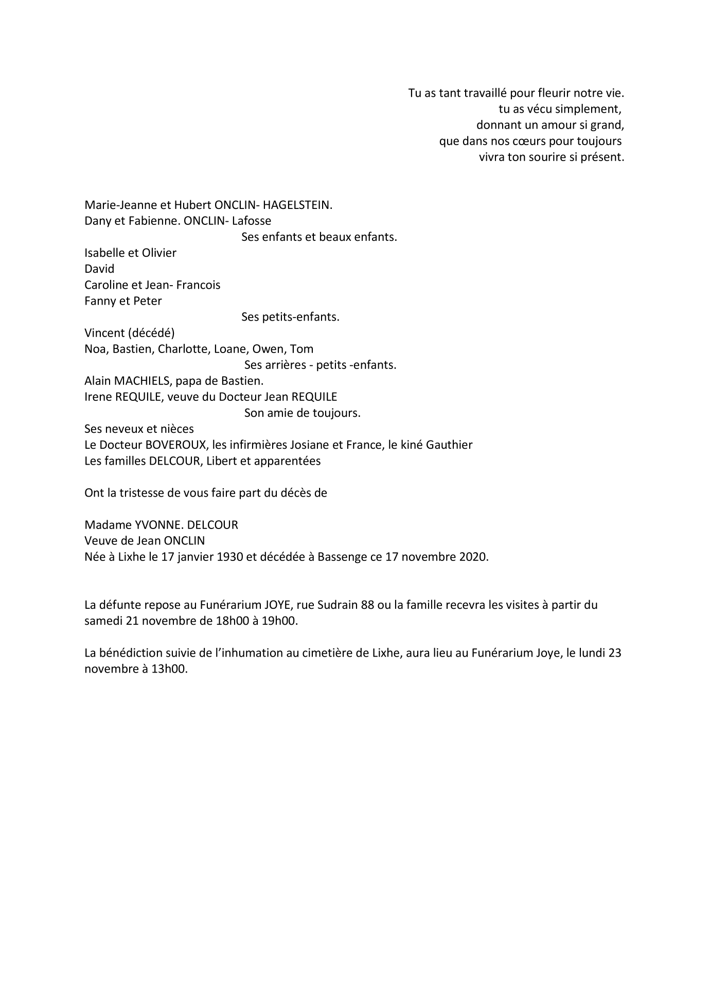 Décédé à Bassenge (4690) le mardi 17 novembre 2020 à l'âge de 90 ans