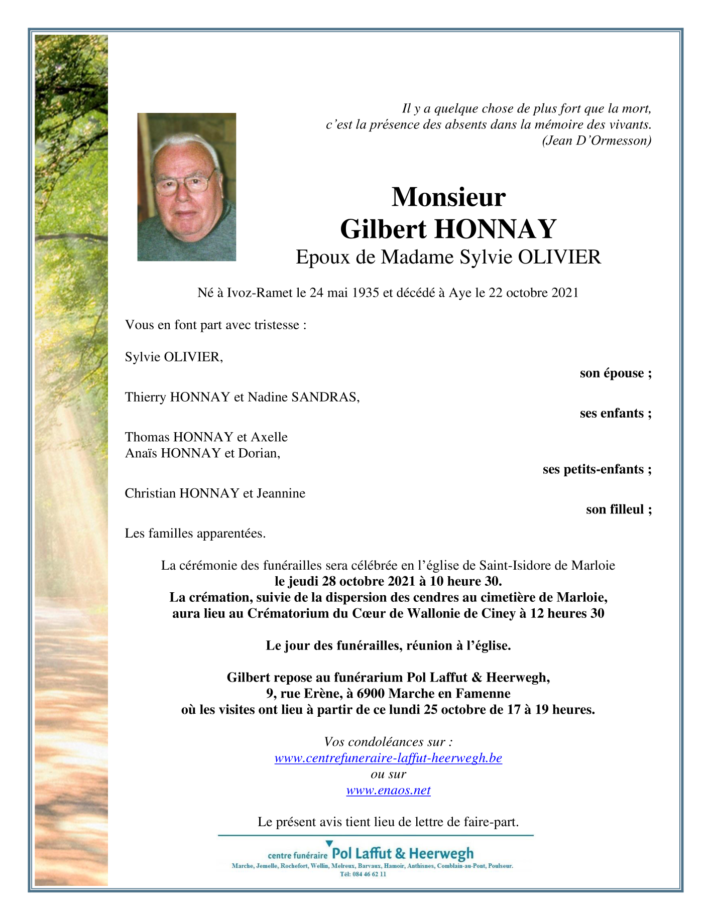 Died in Aye (6900) on 22 October 2021 at the age of 86 years