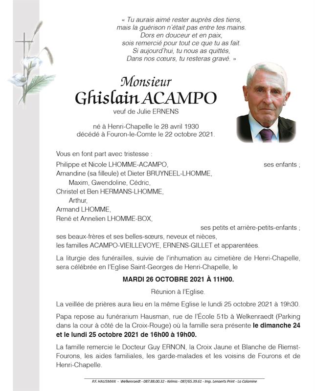 Overleden te Fouron-le-Comte (3798) op vrijdag 22 oktober 2021 op 91-jarige leeftijd
