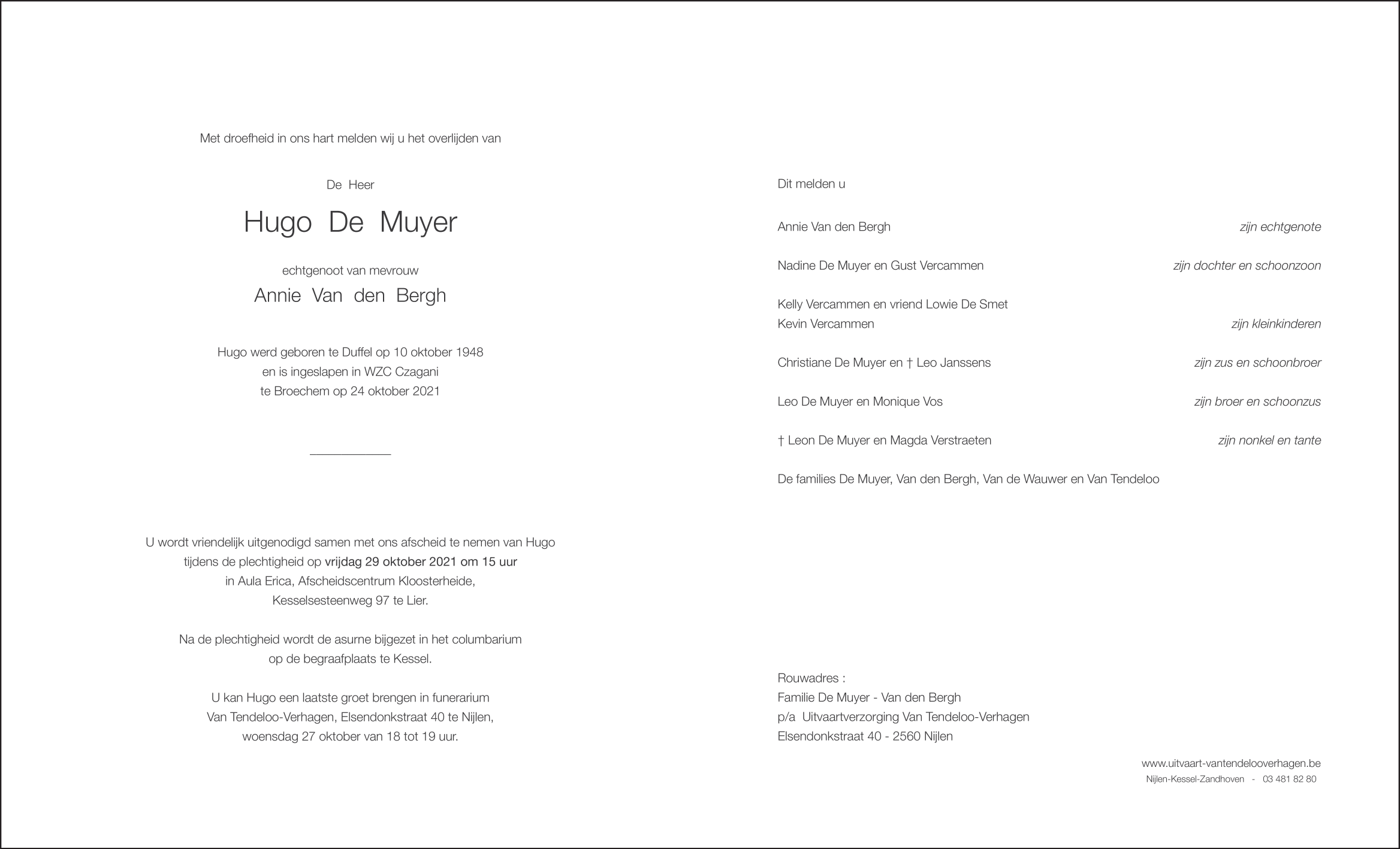 Overleden te Broechem (2520) op zondag 24 oktober 2021 op 73-jarige leeftijd